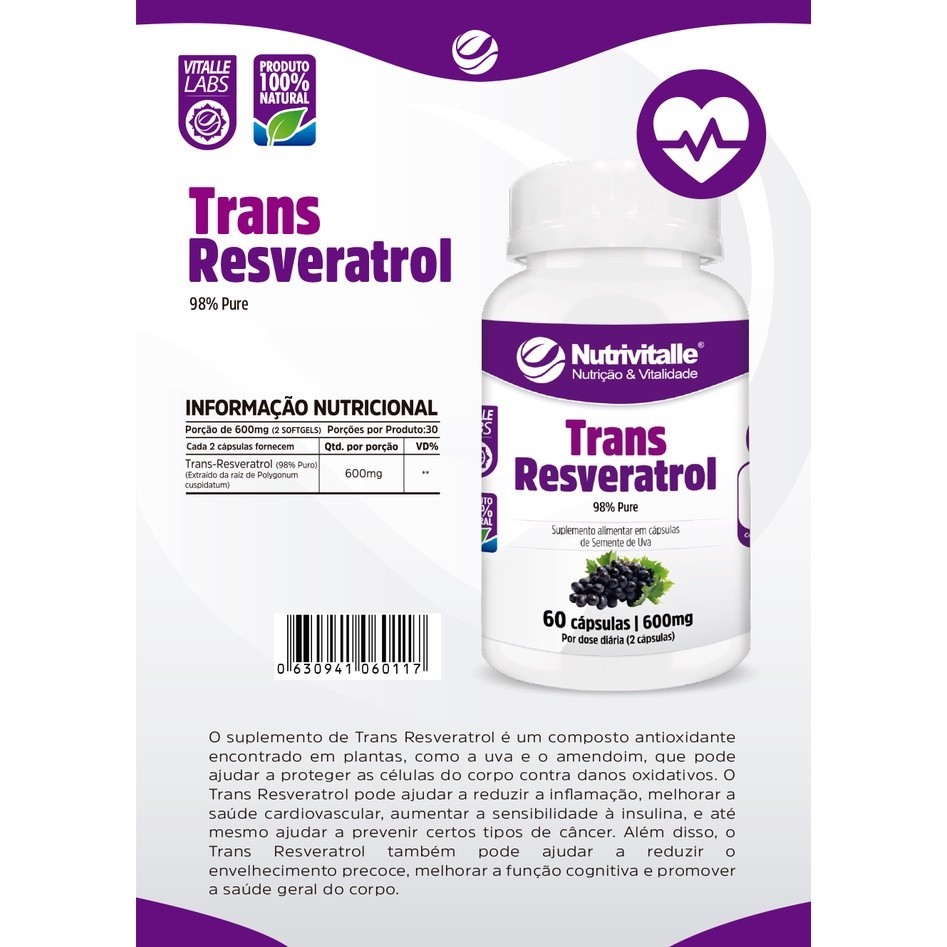 | KIT 2 UN - TRANS RESVERATROL 1000MG 60 CAPSULAS NUTRIVITALLE este produto | R$ 59,93 | 25% | 4.9/5 | — |