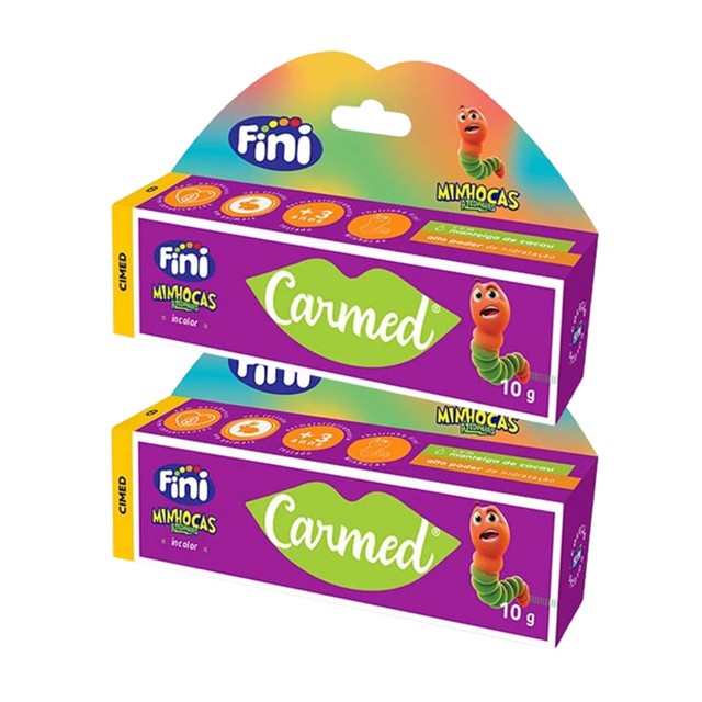 Kit 2 und Carmed Fini Minhocas Azedinhas 10g Chegou o novo Carmed da Cimed: Minhocas Azedinhas. Em collab com a Fini, a Cimed lança mais um Hidratante Labial agora com cheirinho Fini Minhocas. Dermatologicamente testado, o Hidratante Labial Carmed Minhocas Azedinhas traz em sua fórmula manteiga de cacau com alto poder de hidratação, proporcionando lábios macios e sem aquele efeito rachado e seco.Ideal para passar antes do batom, pois o Carmed Minhocas é incolor e não interfere na maquiagem: Pode ser passado antes ou depois e ao longo dia, sempre que necessário.