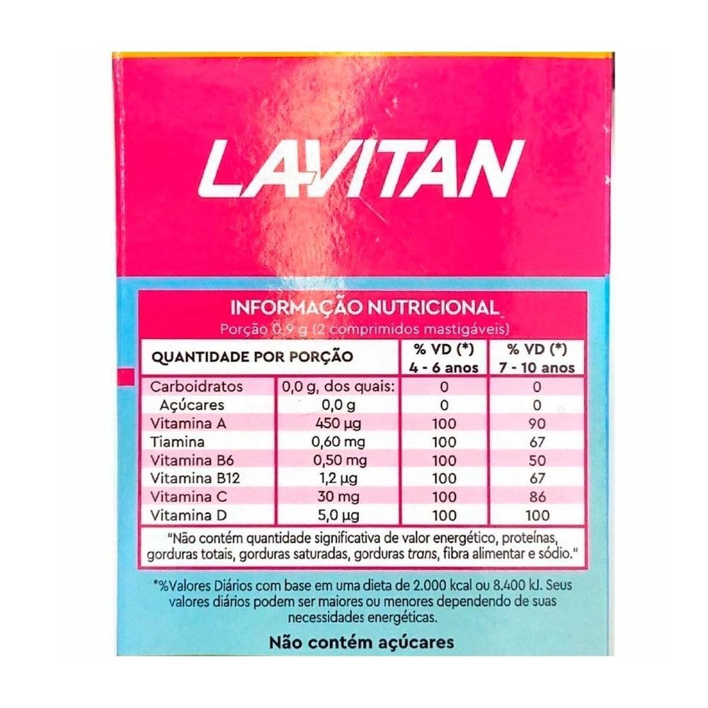 Lavitan Kids Tutti-Frutti é o suplemento ideal para crianças. Com 60 comprimidos mastigáveis por embalagem, esse produto foi projetado para tornar a saúde das crianças mais gostosa e divertida. BENEFÍCIOS: Reforça a imunidade infantil; Estimula o crescimento saudável; Fortalece os ossos e dentes; Com sabor delicioso de Tutti-Frutti; Contém vitaminas essenciais; Facilita a ingestão para crianças; Apoia o desenvolvimento cognitivo; Fornece energia para brincadeiras; Auxilia na digestão; Previne deficiências nutricionais; MODO DE USAR: Crianças de 2 a 3 anos: 1 comprimido por dia; Crianças de 4 a 8 anos: 2 comprimidos por dia; Crianças acima de 9 anos: 3 comprimidos por dia; Mastigue bem antes de engolir; ADVERTÊNCIAS: Mantenha fora do alcance das crianças; Não exceda a dose recomendada; Consulte um pediatra antes de iniciar o uso;