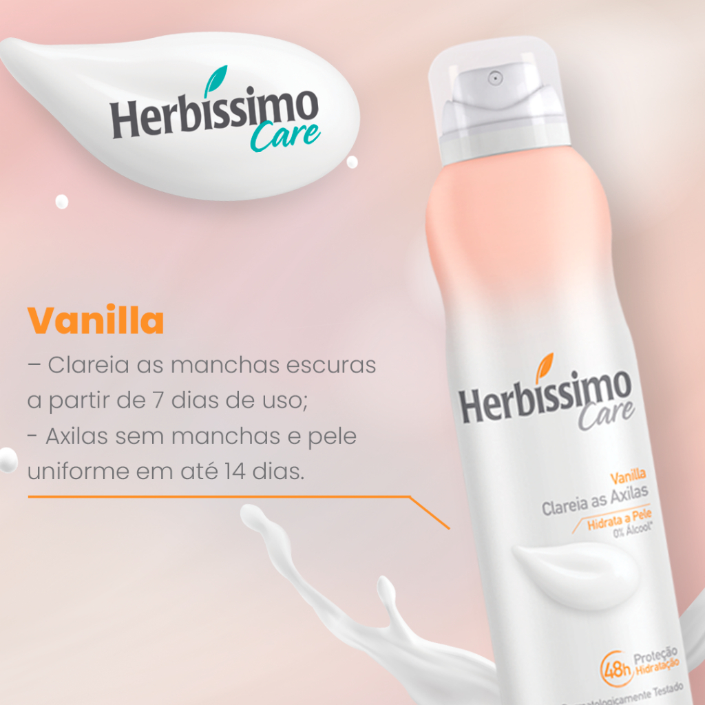 Kit 2 unid - Desodorante Aerossol Antitranspirante Herbíssimo Care Vanilla 150ml