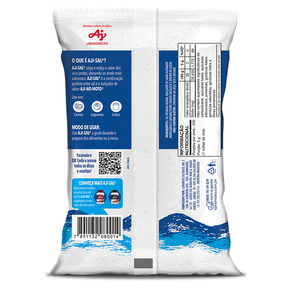 AJI-SAL® é mais que sal, pois também realça. Com uma tecnologia única da Ajinomoto, cada cristal de sal é envolto por uma camada de AJI-NO-MOTO® (glutamato monossódico), trazendo o gosto umami e descomplicando o preparo das refeições, proporcionando momentos mais divertidos e deixando seus pratos ainda mais deliciosos.
