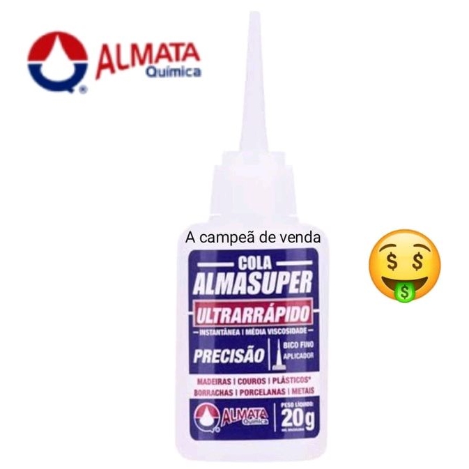 | Kit com 10 unidades cola bico fino Almasuper Ultrarrápido 20g Almata | R$ 57,00 | 46% | 4.9/5 | 31 |