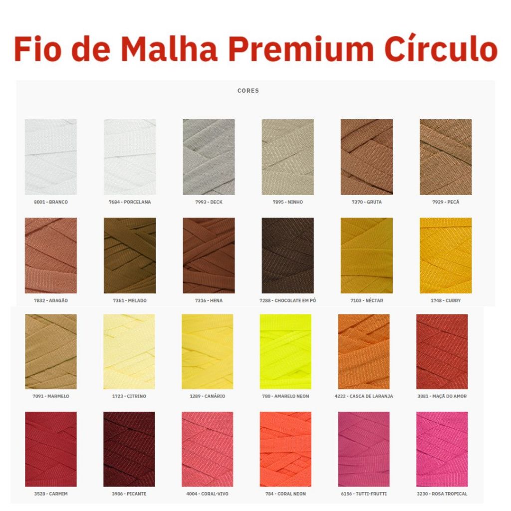 KIT CONTENDO 2 UNIDADES DO FIO DE MALHA PREMIUM CÍRCULO 2 UNIDADES DA MESMA COR 25MM / 140M (CADA ROLO) Os fios de malha extra premium são produzidos através de malhas fabricadas exclusivamente para este fim. Por este motivo não há diferença de espessura no decorrer do rolo. Não utilizamos resíduos têxteis. Obtenha um melhor ajuste de ponto com nossos fios de malha com elastano (Stretch). - Sem emenda - Fio regular sem diferença na espessura dentro do rolo - Não perde cor e brilho - Fio com elasticidade e macio (Stretch) Sobre o fio: Composição: 94% poliéster / 6% elastano Metragem aproximada: 140 metros Peso aproximado: média de 260g Espessura de corte: 25mm Ideal para: Crochê - Tricô - Macramê - Tear - Tapeçaria - Artesanato em geral Agulha Recomendada: Crochê - 8,0mm a 12,0mm | Tricô - 9,0mm a 12,0mm *A cor do produto pode variar de acordo com as configurações do seu monitor. Fabricante: Círculo