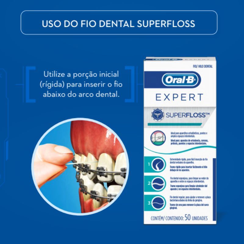 Kit 2 Unidades Fio Dental Oral-B Super Floss - 50 Unidades Cada - Higiene Bucal Completa e Segura