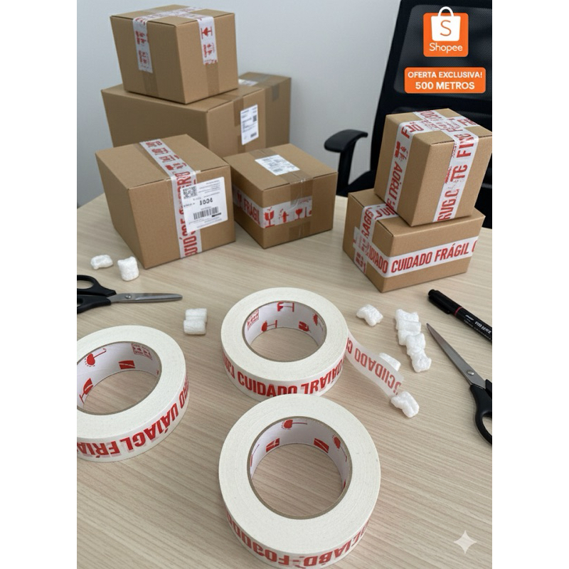 Kit 2 Unidades Fita Cuidado Frágil Direto Da Fabrica 500 Metros