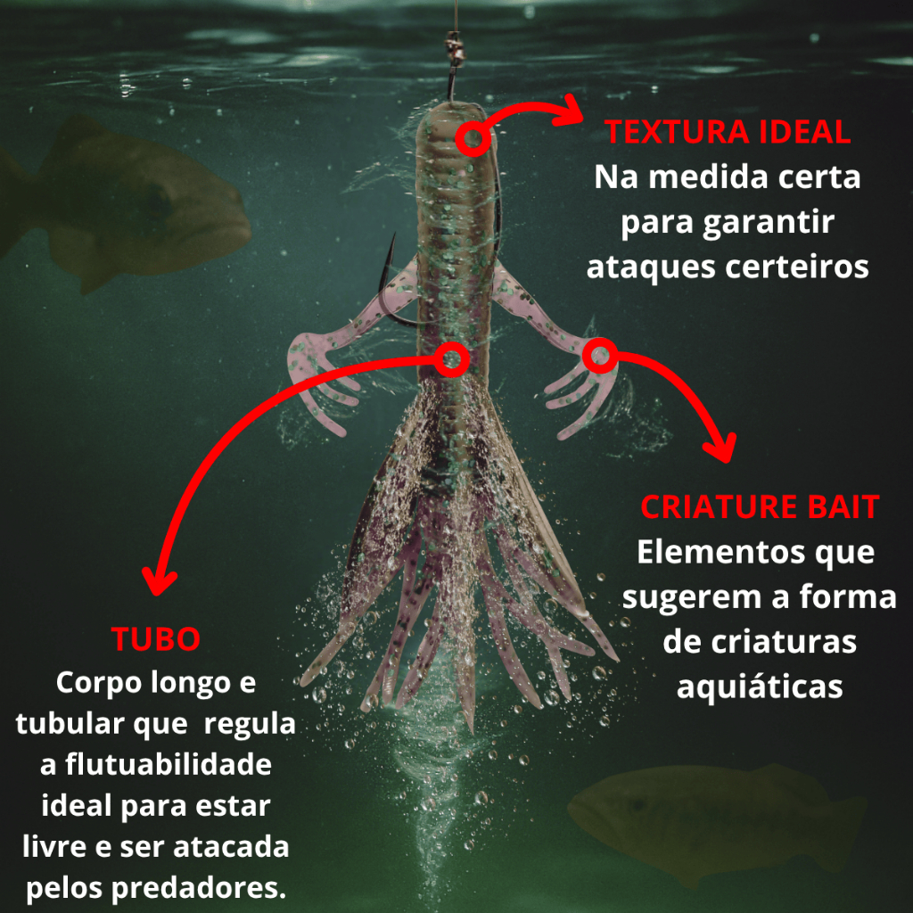 Kit 2 Unidades Iscas Artificiais Matadeira Soft Craw Tube Original Criatura - Traíra Tucunaré Tilapia