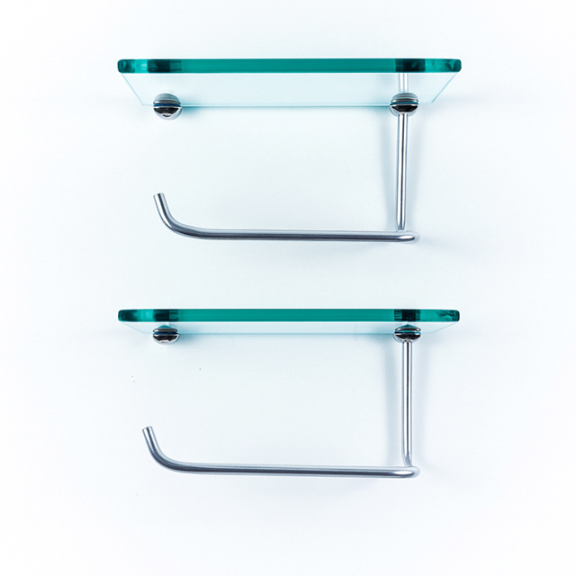 Kit 2 unidades Porta Papel Higiênico com suporte para celular em vidro INCOLOR 6mm