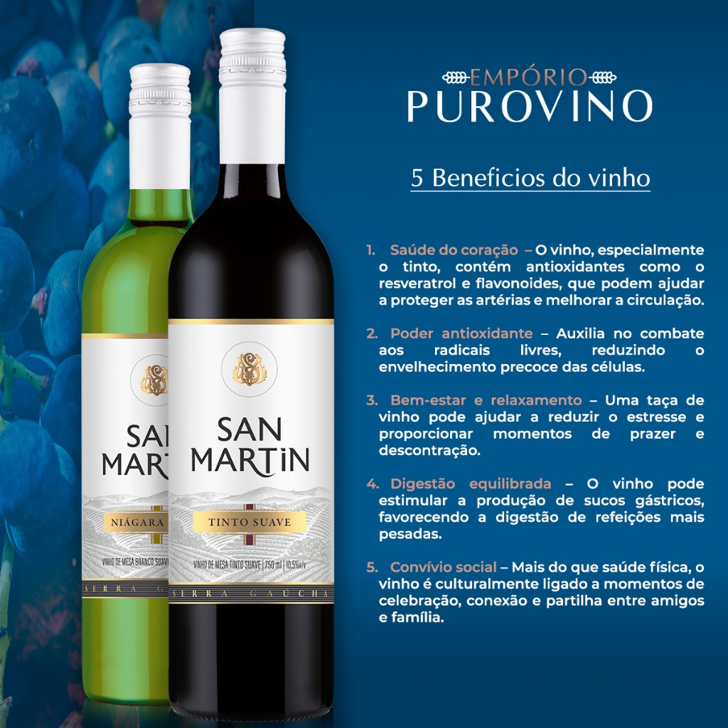 Vinho Branco Suave Niagara 750 Ml - San Martin Os vinhos San Martin têm como característica da marca o amor que a família Panizzon tem por onde ela iniciou a sua trajetória de sucesso, San Martin é o nome da Capela onde a Vinícola Panizzon está sediada no interior de Flores da Cunha desde 1960. Elaborado com uvas Niágara. Notas de degustação: Visual: Coloração amarelo palha Aroma: Intenso com aromas da fruta. Gustativo: Leve acidez e doçura.