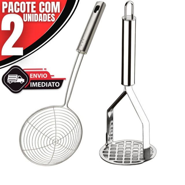 | Kit 2 Utensílios de Cozinha Inox – Escumadeira de Fritura + Amassad... este produto | R$ 20,90 | 55% | 4.9/5 | 114 |