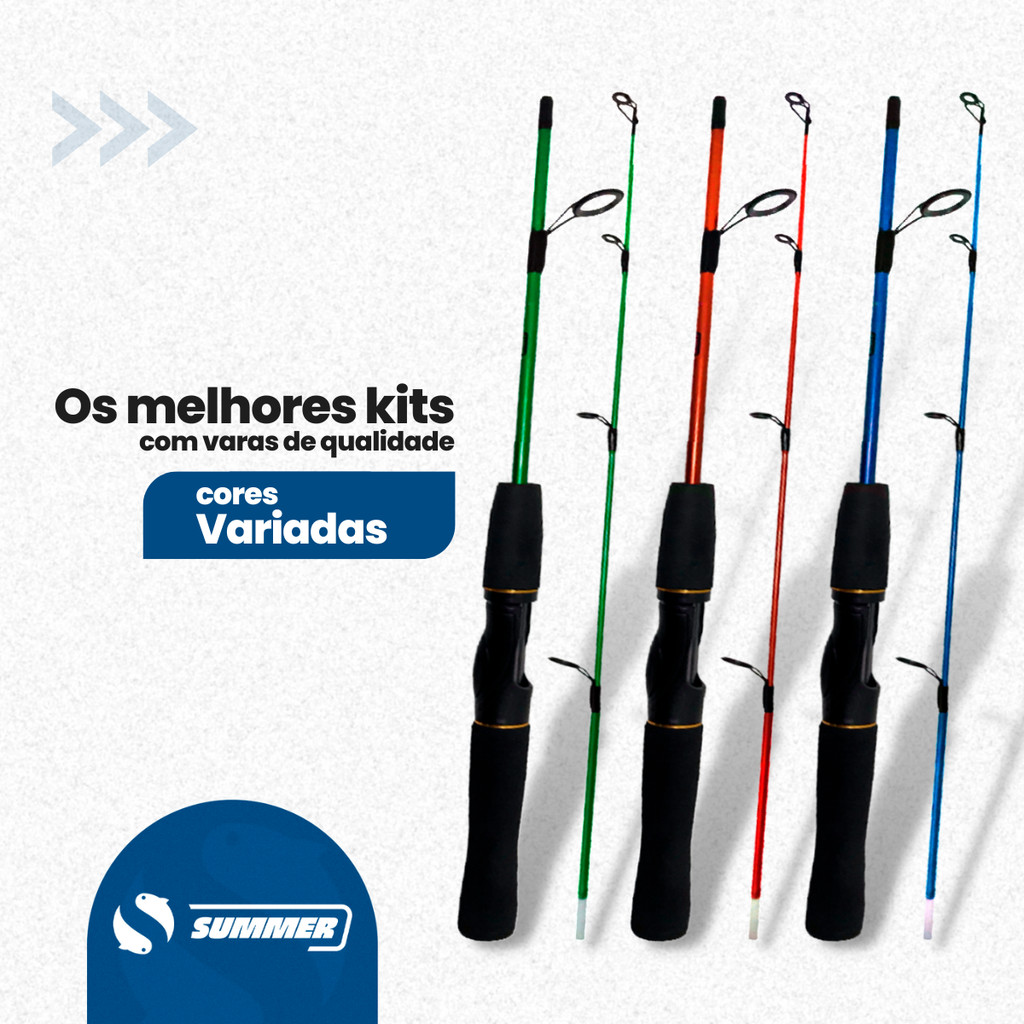 Kit 2 Vara Completa de Pesca 1,20m 2 Molinete e Acessorios