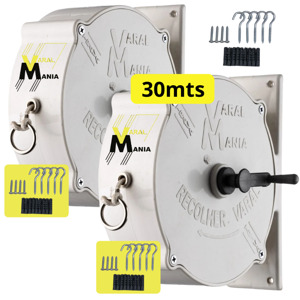| Kit 2 Varais Recolhíveis Parede 30m Branco + 2 Kits Completos de In... este produto | R$ 86,90 | — | 4.9/5 | 13 |