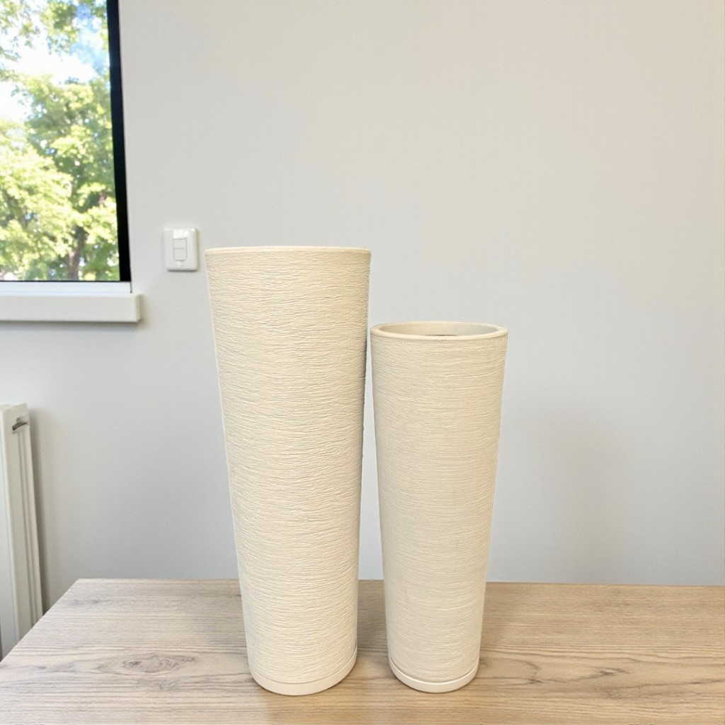Kit 2 Vasos Coluna Ibiza N°1,2 Planta Flor Jardim Varanda Moderno Elegante Polietileno + Pratos