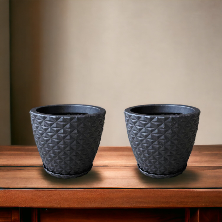 Kit 2 Vasos Decorativos Planta ou Flor Polietileno Cone Redondo Diamante 3D Nº1 com Pratos (20X23X16)