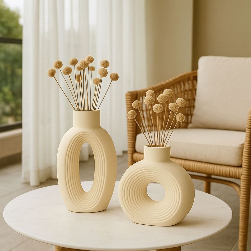 Kit 2 Vasos Decorativos Verona em Gesso Branco e Marfim com Design Orgânico e Sofisticado para Ambientes Elegantes