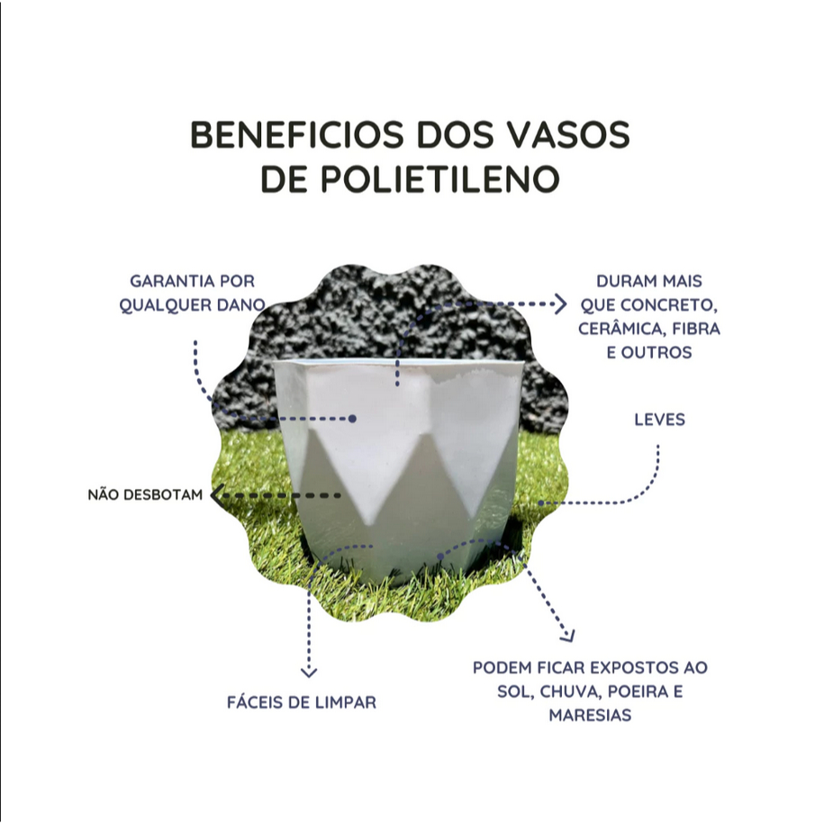 Kit 2 Vasos cachepô médio N3 decorativo para plantas e flores ideal para centro de mesa casa sala cozinha ENVIO IMEDIATO!!! 📦 O que você está comprando: 2x Vaso facetado cachepot f4 📏 Dimensões do Vaso: Altura: 16 cm Largura (boca): 17 cm Fundo: 14 cm 🌱 Cultive com estilo e funcionalidade! Este vaso foi desenvolvido para quem busca unir beleza e praticidade no cultivo das plantas. Seu design moderno valoriza qualquer espaço — do jardim à varanda, da sala à área gourmet. ⚡ Por que escolher vasos de polietileno? Conheça os benefícios: ✅ Leves e duráveis – fáceis de transportar e resistentes ao uso diário ✅ Para áreas internas e externas – suportam sol e chuva sem desgastar ✅ Fácil de limpar – basta um pano úmido para manter sempre bonito ✅ Não mofam nem racham – excelente resistência ao tempo e à umidade ✅ Inibem fungos e bactérias – proteção extra para suas plantas ✅ Cores vibrantes por mais tempo – não desbotam com facilidade ✅ Economia garantida – longa vida útil com ótimo custo-benefício ✅ Baixa manutenção – ideal para quem ama praticidade 🔒 COMPRA SEGURA E GARANTIDA.
