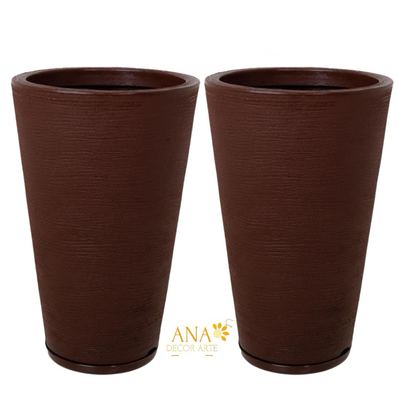 Ana Décor Arte ✨💡 O kit vai com 2 Coluna Escovada, com prato coletor. medidas/ Altura 59 cm Boca 41 cm Base 25 cm material: Polietileno garantia: 3 meses do fornecedor Já acompanha o prato coletor. Vasos resistentes, leves e funcionais. ✅ Podem ficar na área externa ou interna. ✅ Suportam variações climáticas. ✅ Quem tem um vaso de polietileno sabe do que estamos falando, são vasos super resistentes além de serem elegantes para o ambiente, são vasos acolhedores. Para planta natural ou artificial. ✅ Pode plantar direto nele. Para mais informações ℹ️ Entre em contato pelo chat 💬 Será um prazer te ajudar. Decore com Ana Décor Arte.
