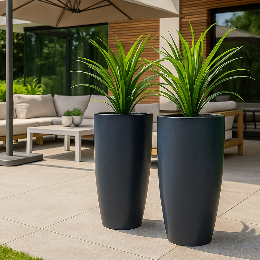 Kit 2 Vasos Planta Preto Extra Grande Luxo 70x33 Jardim Decoração Resistente Leve