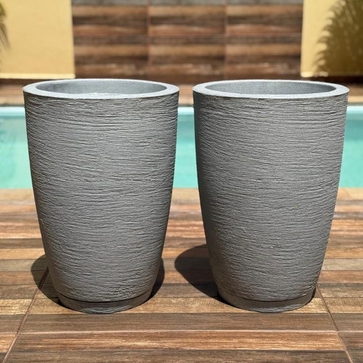 Fotos e Vídeos Reais do produto Kit com 2 Vasos Redondos Escovados Barcelona N2 em Polietileno com Prato – 44x31cm Renove a sua decoração com elegância e praticidade usando o Kit com 2 Vasos Redondos Escovados N2, fabricados em polietileno de alta resistência e acompanhados de pratos coletores. Com acabamento escovado e formato arredondado, esses vasos combinam perfeitamente com plantas de médio porte e se adaptam a ambientes internos e externos. O acabamento escovado confere um toque moderno e sofisticado, enquanto o prato coletor oferece praticidade no dia a dia, ajudando a conter o excesso de água e mantendo o ambiente limpo. 📏 Medidas de cada vaso (N2): Altura: 44 cm Diâmetro da boca: 31 cm Diâmetro da base (fundo): 20 cm ✅ Características: Material: Polietileno (leve, resistente e durável) Acabamento: Escovado (efeito fosco com aparência sofisticada) Formato: Redondo Acompanha: 2 pratos coletores (1 para cada vaso) Uso: Interno e externo Resistente ao sol, chuva e umidade Não trinca, não desbota e é fácil de limpar 🌿 Ideal para: Plantas ornamentais, folhagens, flores, palmeiras pequenas ou arranjos artificiais Ambientes como salas, varandas, escritórios, jardins e halls de entrada Composições modernas, minimalistas, elegantes ou naturais Qualquer dúvida entre em contato conosco pelo chat da loja..