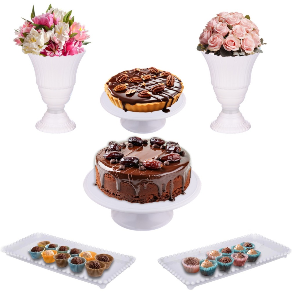 Kit 2 Vasos Reais + 2 Bandejas + 2 Boleiras 20 E 26 Cm