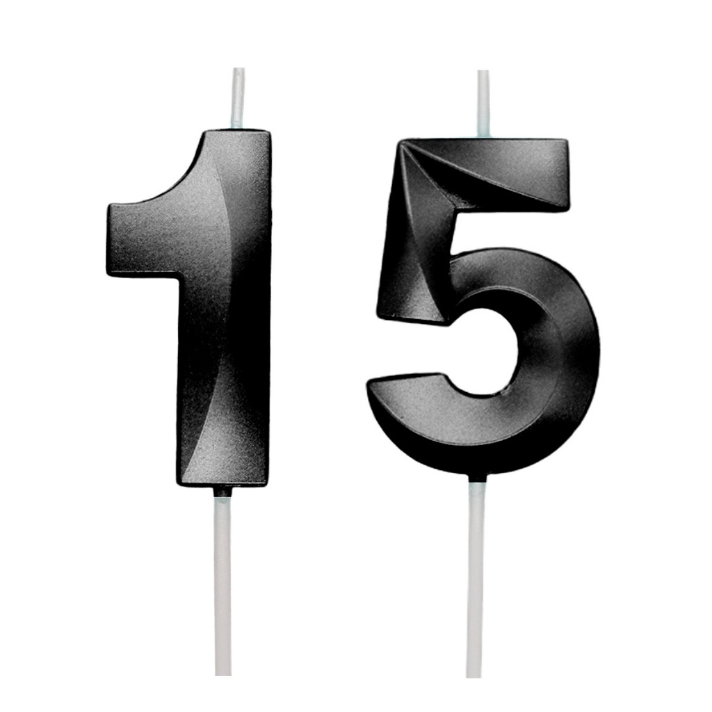 Kit 2 Velas De Aniversário Mini Número Preto Diversas Idades 5cm Silver Festas