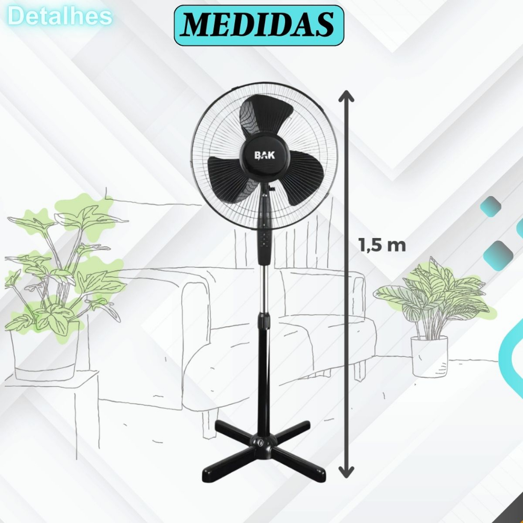 O Ventilador de Pedestal Bak é a solução ideal para quem busca conforto e eficiência em dias quentes. Com um design moderno e elegante na cor preta, suas pás de plástico garantem durabilidade e fácil manutenção. Com um diâmetro de 43 cm e potência de 45W, este ventilador oferece um fluxo de ar potente e agradável, perfeito para qualquer ambiente. Este modelo conta com três velocidades, permitindo ajustar a intensidade do vento conforme a sua necessidade. A eficiência energética classificada como A assegura que você estará fazendo uma escolha sustentável, contribuindo para a economia de energia em sua casa. Embora não inclua controle remoto, sua operação é simples e intuitiva, tornando-o acessível para todos os usuários. Ideal para salas, quartos ou escritórios, o Ventilador de Pedestal Bak é a adição perfeita para manter o frescor e o conforto em qualquer espaço.