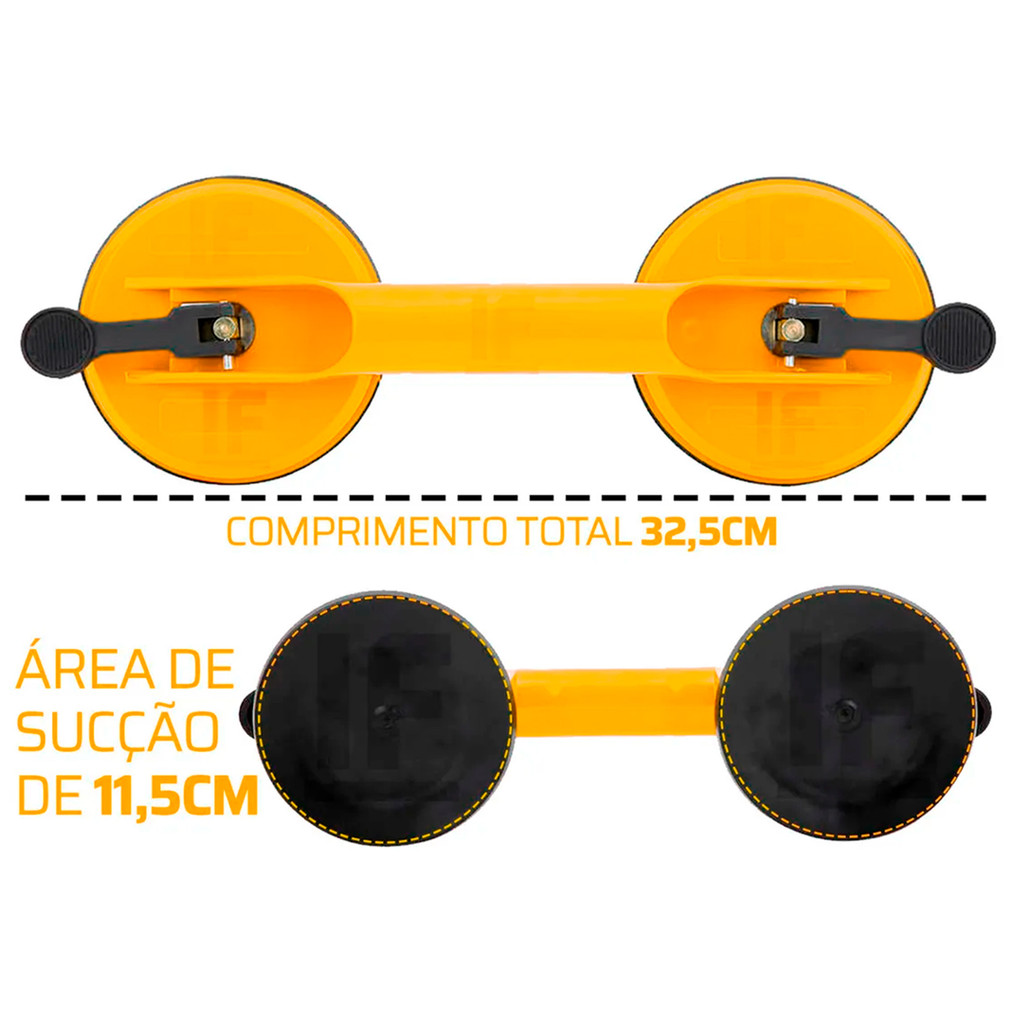 Distribuído por Ismafer Ferramentas 2 UNIDADES: Ventosa Dupla P/ Vidros, Metais, Mármores, Espelhos A ventosa dupla é projetada para chapas de vidros e metais, permite transferir e instalar vidros de janelas e vidros duplos, o seu corpo é feito de plástico solido para vidros de até aproximadamente 60 Kg. Características: Corpo em Plástico e Ventosas em Borracha - Sucção por: Vazio com Alavanca - Feito para: Vidros e chapas de até aproximadamente 60 Kg - Capacidade de Carga: Aproximadamente 60 Kg - Ideal para: Carregar Objetos Pesados e Manuseio de Superfícies Delicadas como Vidro, Espelho, Chapas de metais etc. - Peso por peça: 510g Marca: Titanium Ref: 05788 Garantia: 3 meses Distribuído por Ismafer Ferramentas