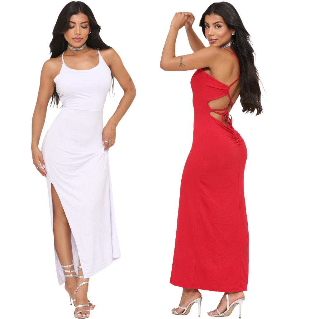 Kit 2 Vestidos longos Costas Nua de Viscolycra Trançado