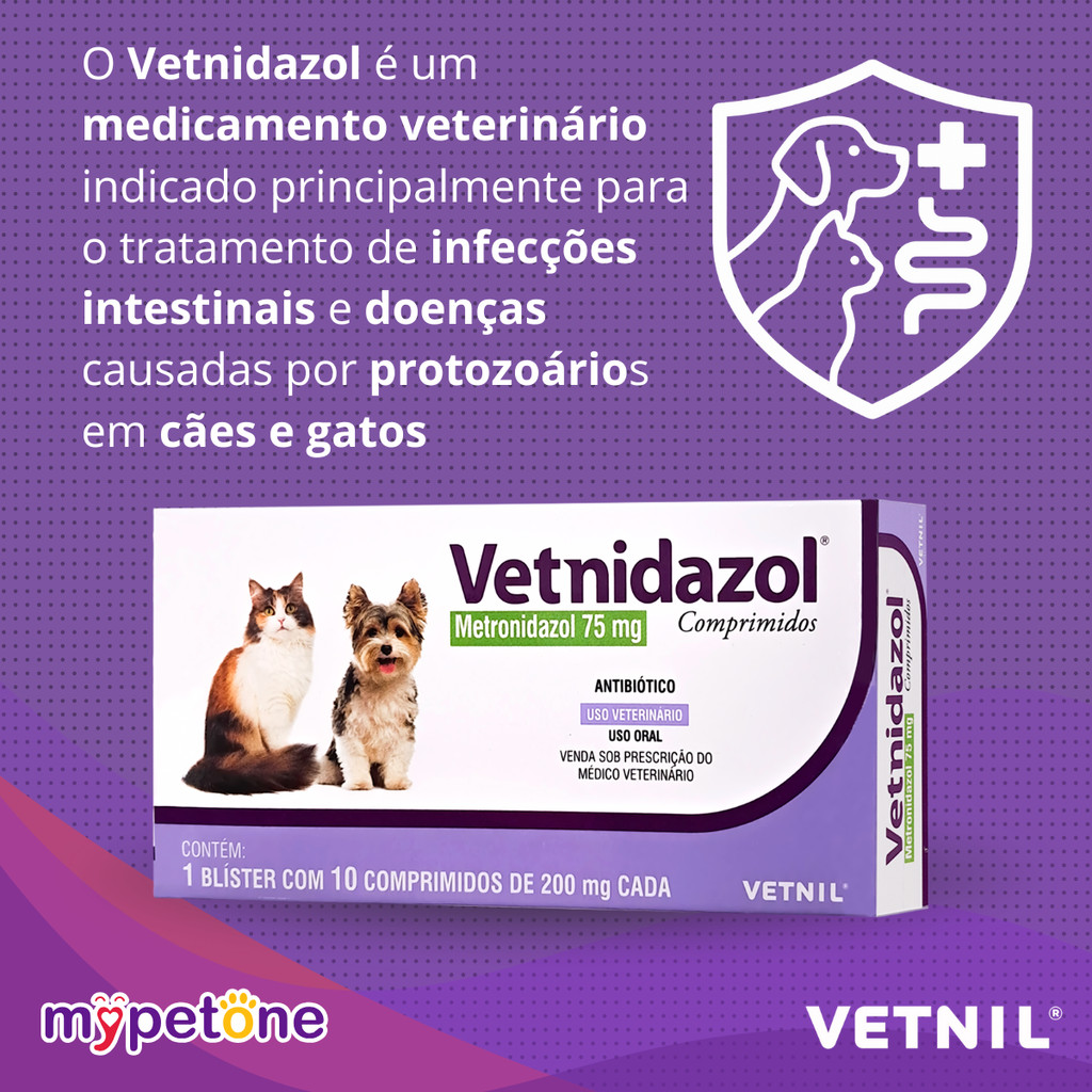 Kit 2 Vetnidazol 75mg Vetnil 10 Comprimidos - Para Cães e Gatos