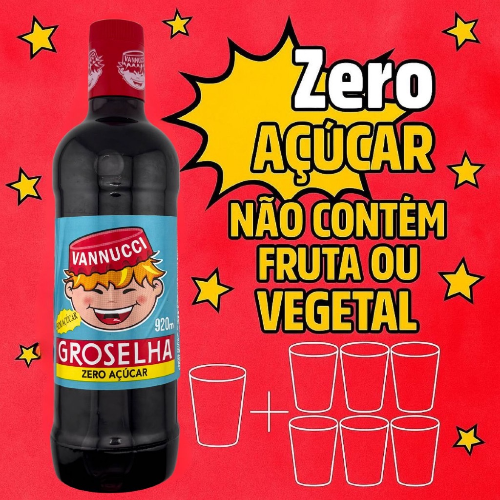 Kit 2 Xarope de Groselha Vannucci Zero Açúcar 920ml Recomendado Para Diabéticos Milkshake