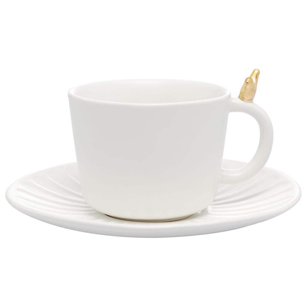 Kit 2 Xícaras de Chá com Pires Wolff Colibri Cerâmica Branca Elegante Wolff