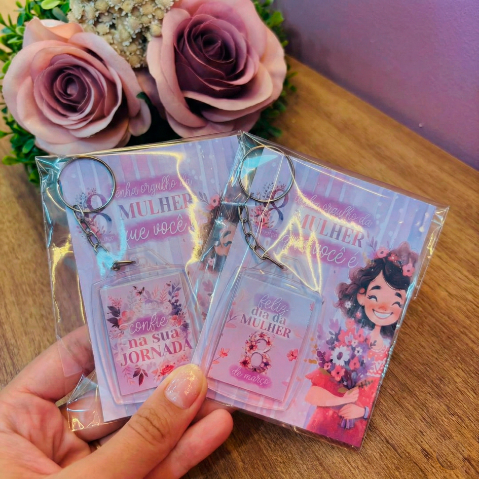 Kit 20/50/100 Chaveiros Dia da Mulher c/ Tag - Brinde Corporativo Lembrancinha Mimo - Envio Rápido