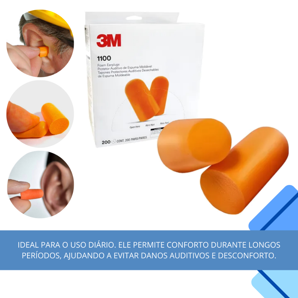 Protetor Auricular 3M 1100 Material: Espuma Cor: Laranja Plug de ouvido 3M que possui espuma macia e hipoalergênica com desenho cônico, sendo capaz de criar excelente vedação para redução de ruído no canal auditivo Superfície lisa e resistente à sujeira para melhor higiene C.A. 567416 dB (NRRsf)Confortável para o uso em longos períodos de tempoVersatilidade com a máxima proteção. O Protetor Auricular 3M 1100 possui espuma macia e hipoalergênica com desenho cônico, sendo capaz de criar excelente vedação para redução de ruído no canal auditivo. Por ser moldável, ele consegue se adaptar à maioria dos condutos auditivos - sempre com muito conforto. *FOTOS ILUSTRATIVAS*