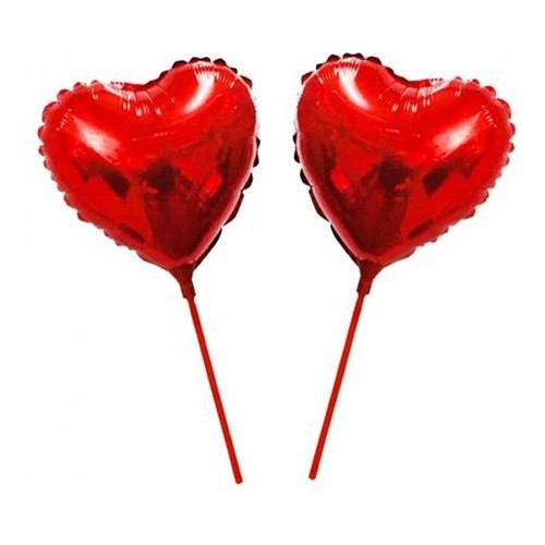 Kit 20 Balão Metalizado Coração Vermelho Centro Mesa 22cm 10 Polegadas + Varetas - Festas Decoração