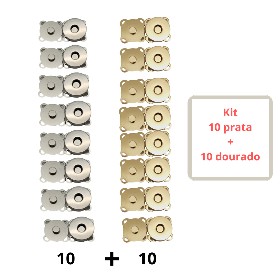 Kit 20 Botões Magnético Imantado de costura 18mm (10 prata+10 dourado)