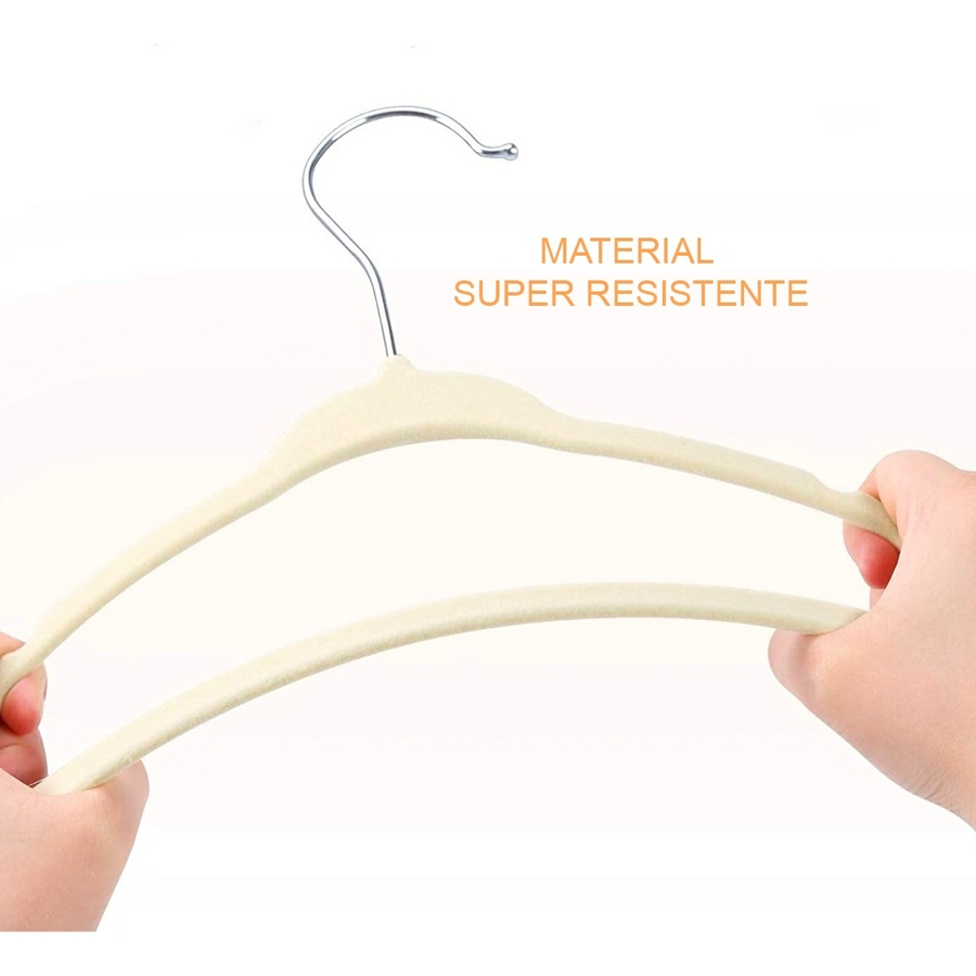 Ola, seja bem-vindo a nossa loja! Conheca um pouco mais sobre o nosso produto: Design ultra fino, proporcionando uma organizacao melhor e aumentando espaco em seu guarda-roupa; Curvas perfeitas para nao danificarem a estrutura da roupa; Textura em veludo bege; ESPECIFICACOES TECNICAS: Dimensoes do produto: 45cm x 23cm x 0,5cm (C x A x L) Material do cabide: plastico aveludada Material da haste: aco cromado