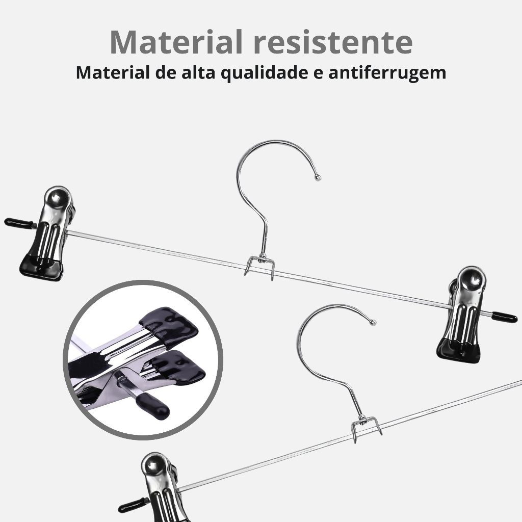 | Kit 20 Cabides Presilhas Metal Cromado Calças Saia Bermuda Vestido este produto | R$ 57,51 | 4% | 4.8/5 | — |