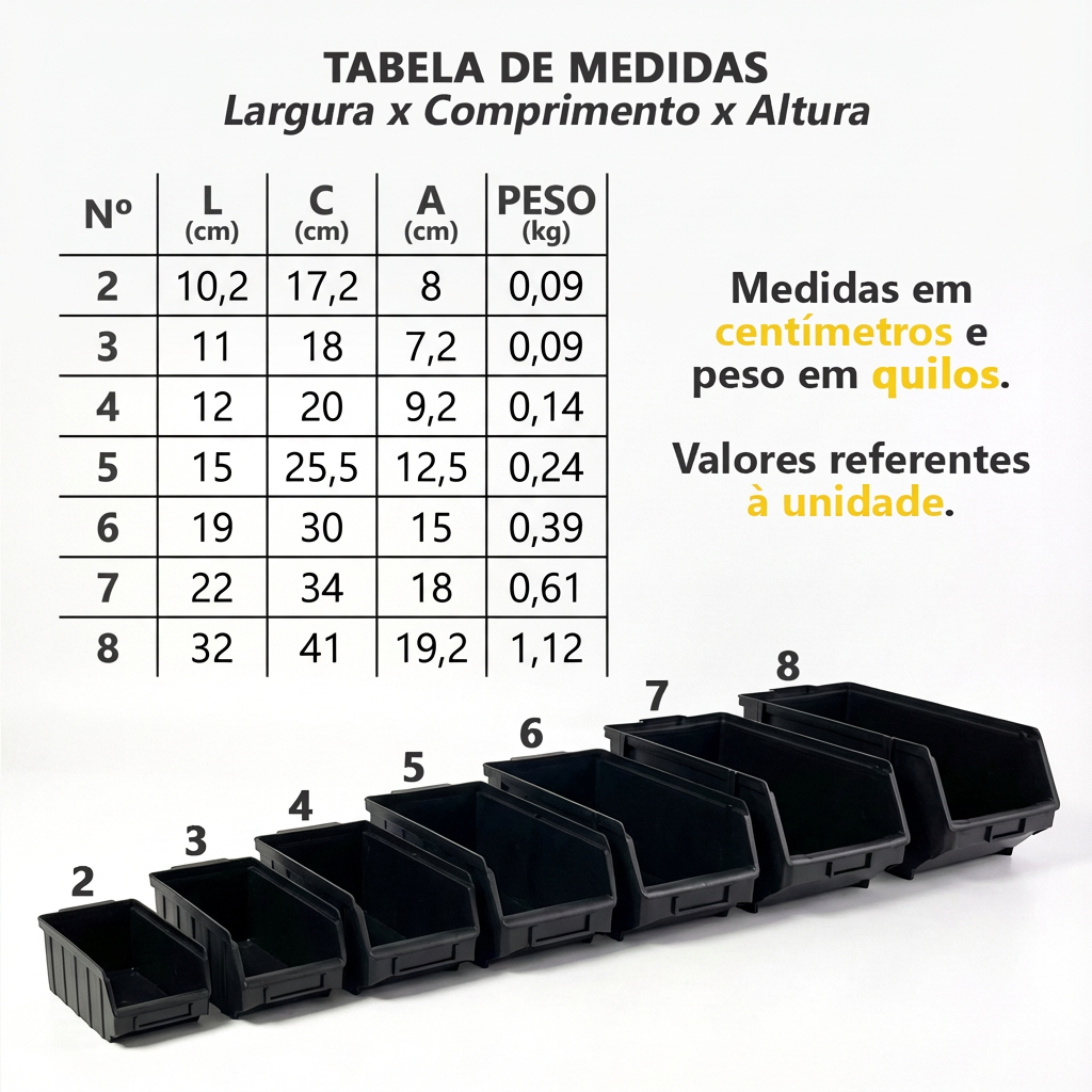 Eficiência começa na organização! Transforme seu espaço com este kit de caixas gaveta tipo BIN – ideal para parafusos, acessórios, ferramentas, miudezas ou itens domésticos. Plástico reforçado, durável e empilhável: aproveite melhor cada prateleira ou bancada. Porta-etiquetas frontal para identificação rápida e prática. KIT COM 20 UNIDADES Cores disponíveis: preto ou azul, visual clean que combina com ambiente de oficina, estoque ou casa. Uso versátil: perfeito para oficinas mecânicas, almoxarifado, home-office, garagem, estante doméstica ou e-commerce. Destaques: ✔ Maximiza o uso do espaço vertical (empilhável) ✔ Facilita a separação de peças e torna tudo acessível ✔ Produzido em plástico de alta resistência para uso frequente ✔ Visual profissional, ótimo para loja, oficina ou casa organizada ✔ Ideal para revenda ou para compor organização em volume (kits com várias unidades) Aplicações comuns: Parafusos, porcas, arruelas, pregos Utensílios domésticos, material de escritório, miudezas Estoque de e-commerce, B2B, loja de utilidades Garagem, ateliê, estúdio, casa organizada Organize com eficiência e elegância — invista no kit que entrega resultado visível.