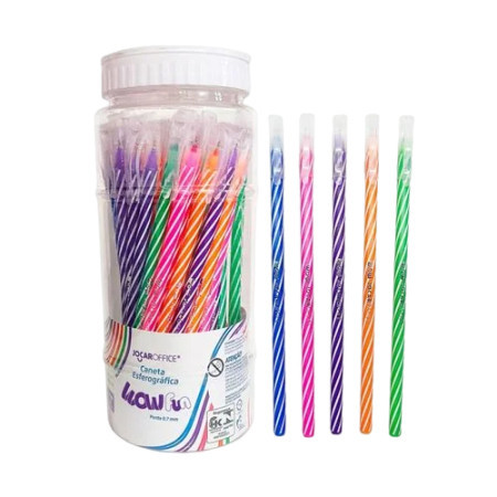 Kit 20 Canetas Esferográficas Wow 0.7mm Coloridas Branco Escritório Escolar Leo&Leo