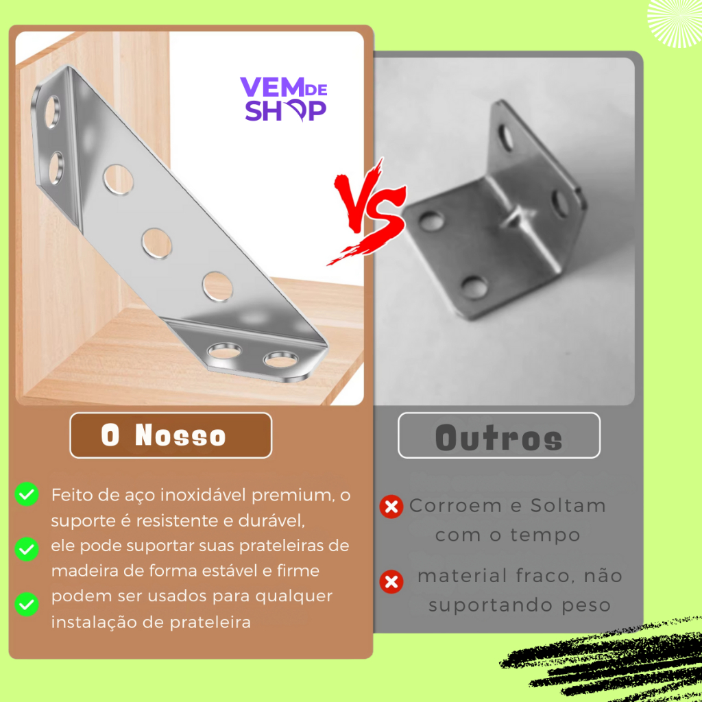 Conector de Canto para Móveis Universal – Kit com 20 Cantoneiras e 80 Parafusos Transforme a montagem dos seus móveis com o Conector de Canto para Móveis Universal! Este kit foi desenvolvido para oferecer máxima durabilidade, praticidade e acabamento impecável, sendo ideal tanto para profissionais quanto para entusiastas de projetos DIY. Durabilidade Superior Fabricado em aço inoxidável de alta qualidade, o conector é resistente à corrosão, arranhões e manchas, garantindo longa vida útil e um visual sempre impecável. Versatilidade Incomparável Compatível com diversos tipos de móveis, desde cadeiras, prateleiras e armários até decorações personalizadas, ele se adapta facilmente a diferentes conexões de madeira e superfícies, como paredes de gesso, drywall, madeira ou concreto. Instalação Fácil e Eficiente O kit inclui 20 cantoneiras reforçadas e 80 parafusos, tornando a instalação rápida e simples, mesmo para iniciantes. Os furos precisos garantem um encaixe perfeito dos parafusos, proporcionando estabilidade e segurança em cada montagem. Aço inoxidável premium: Alta resistência e durabilidade. Design funcional: Suporte de canto com ângulo preciso para máxima estabilidade. Versatilidade: Ideal para diversas superfícies e usos. Kit completo: Inclui tudo o que você precisa para começar. Garanta o melhor acabamento e segurança para seus projetos com o Conector de Canto para Móveis Universal. Adquira já e experimente a diferença de um produto de alta qualidade e praticidade!