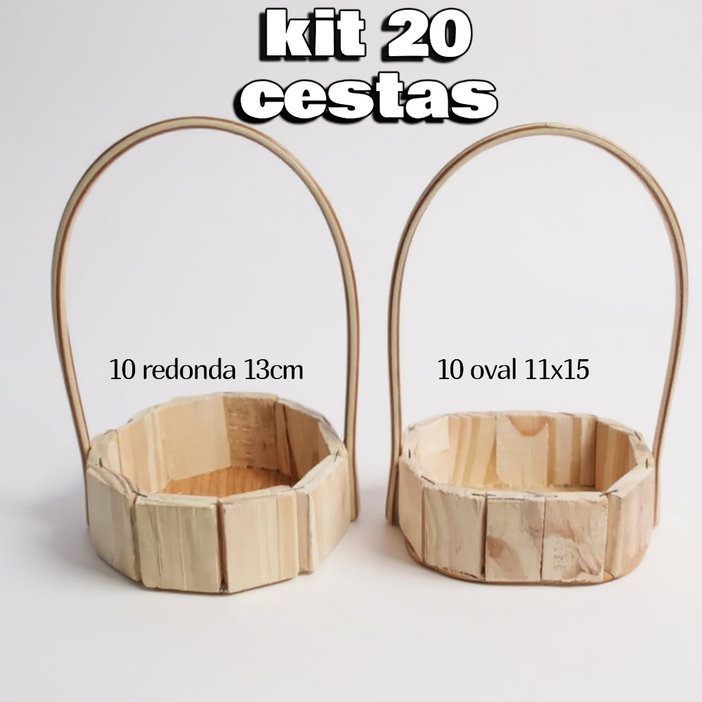 Kit 20 Cestas de madeira Fraldeira Pinus 10 oval 11x15 + 10 Redonda 13 cm Com Alça