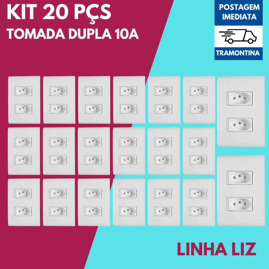 Kit 20 Conjuntos Tomada Dupla 10A Tramontina Linha LIZ cor Branca 4x2 Modular