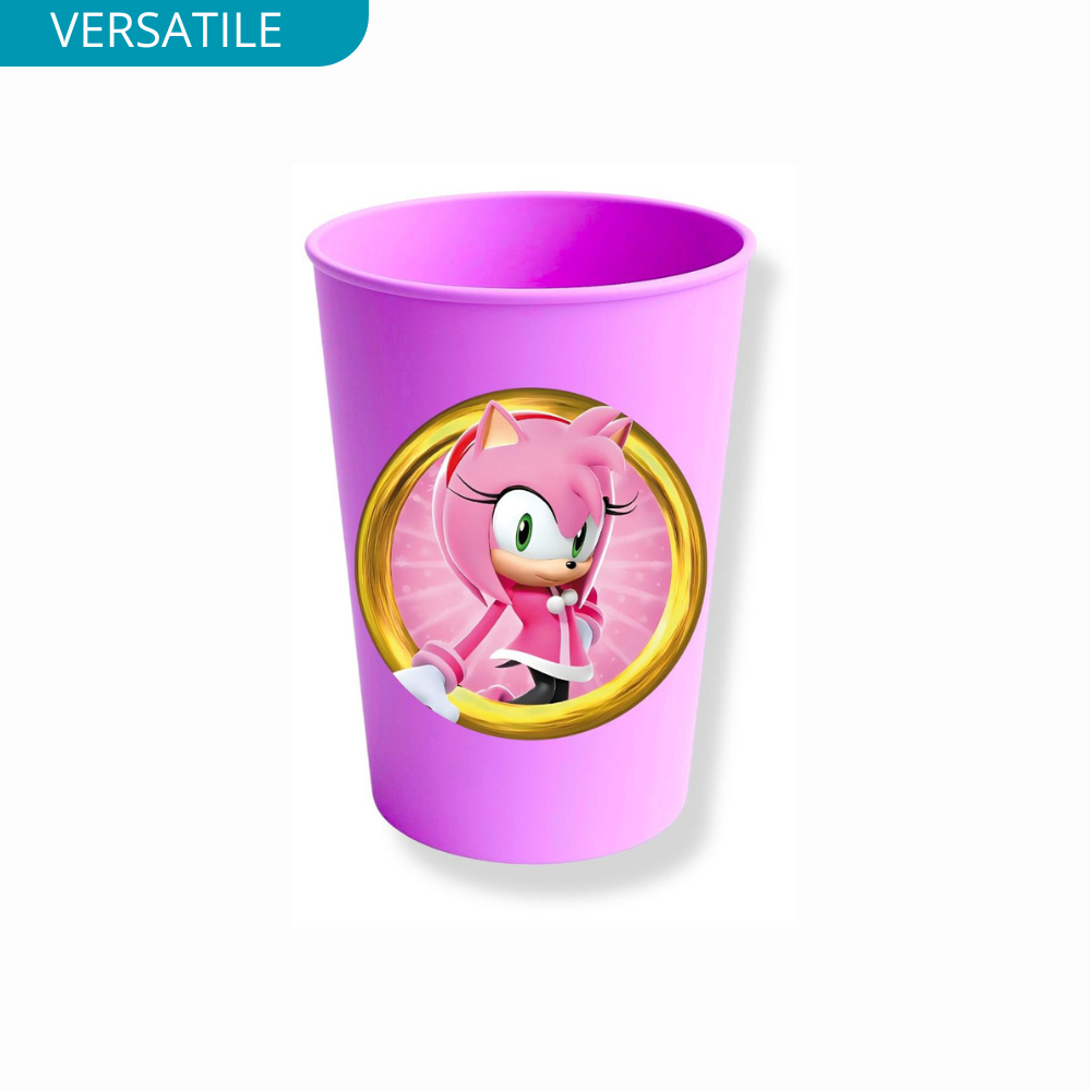 Kit 20 Copos 380ml Adesivados Sonic e Amy Rose para Lembracinhas Festas Crianças Presentes