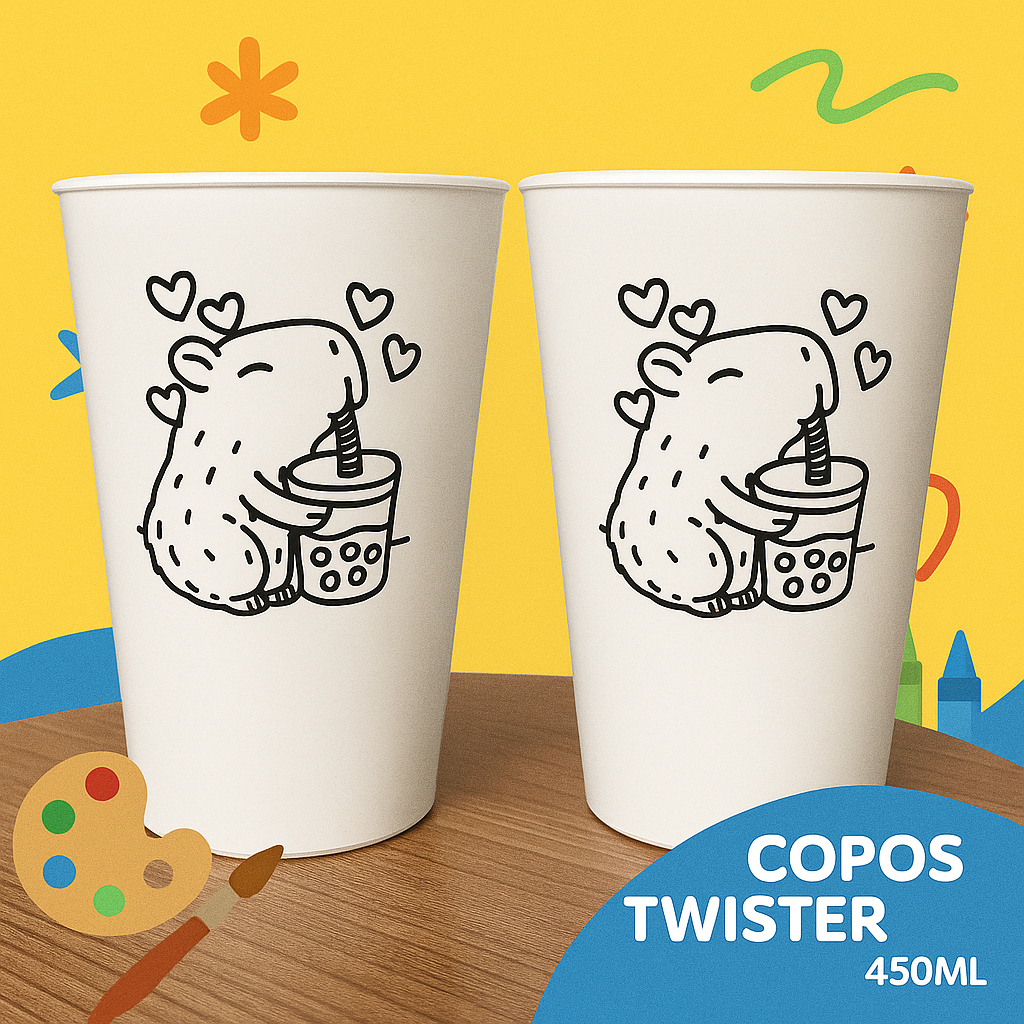Kit 20 Copos twister pp mágico Capivara dia das crianças plastico interativo para colorir infantil