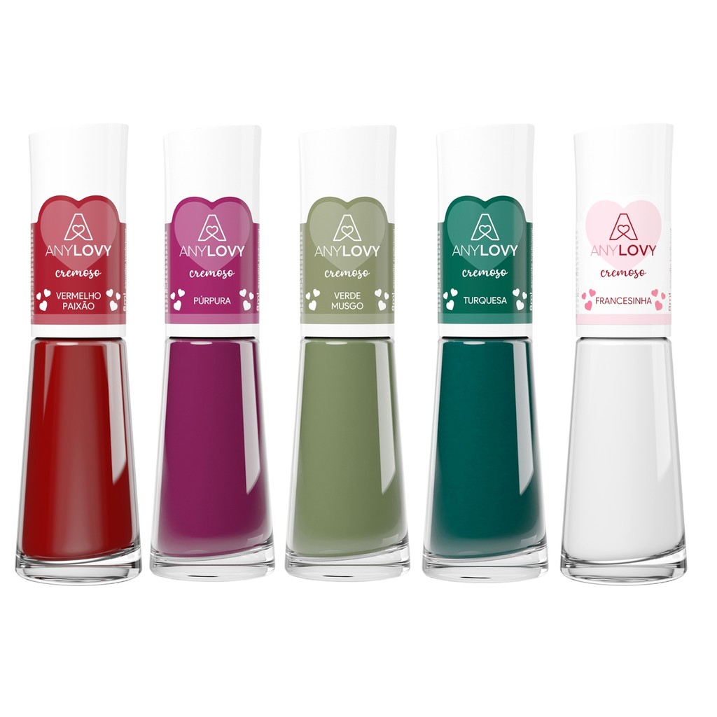 Kit Esmaltes Clássicos ANYLOVY – 20 Cores Icônicas para Unhas Impecáveis Todos os Dias! Descubra o poder da elegância atemporal com o Kit de Esmaltes Clássicos ANYLOVY, uma coleção cuidadosamente desenvolvida para quem ama unhas bem cuidadas no dia a dia, sem complicações! Com fórmula de alta cobertura, secagem rápida ao ar e brilho duradouro, os esmaltes clássicos ANYLOVY entregam acabamento profissional sem a necessidade de cabine LED/UV. Ideal para manicures profissionais ou para quem gosta de fazer as unhas em casa com praticidade e muito estilo. Conheça as 20 cores que vão do sofisticado ao moderno, passando pelo básico com um toque de charme: Rubi – Vermelho profundo e refinado, perfeito para ocasiões especiais. Vermelho Camurça – Vermelho aveludado com toque moderno e elegante. Vermelho Paixão – Intenso e vibrante, um clássico que nunca sai de moda. Cereja – Cor alegre e marcante, para quem ama unhas vivas e femininas. Carmim – Vermelho fechado com toque sóbrio e elegante. Escarlate – Um vermelho vibrante com personalidade. Rubro – Tom terroso com fundo vermelho queimado, tendência de moda. Caramelo – Bege dourado suave e versátil, combina com todos os tons de pele. Chococino – Marrom claro cremoso, perfeito para um look neutro e sofisticado. Nude Clássico – Aquele tom coringa, discreto e elegante para qualquer ocasião. Bronze – Brilho metálico marcante para unhas glamourosas. Nude – Bege rosado delicado, ideal para o uso diário. Pudim – Bege levemente dourado, doce e encantador. Marrom – Profundo e clássico, ideal para estações mais frias. Café – Tom escuro que remete à força e sofisticação. Francesinha – Branco translúcido, essencial para a base de francesinhas perfeitas. Copo de Leite – Branco cremoso e delicado, transmite leveza e pureza. Verde Musgo – Verde fechado com ar natural e elegante. Púrpura – Roxo vibrante e criativo, para quem gosta de ousar. Turquesa – Azul esverdeado alegre e refrescante, com toque tropical. Com esse kit completo, suas unhas sempre serão impecáveis, combinando com qualquer look e ocasião! Dica: Para um acabamento ainda mais duradouro, finalize com o Silicone Secante , garantindo brilho e proteção extra!