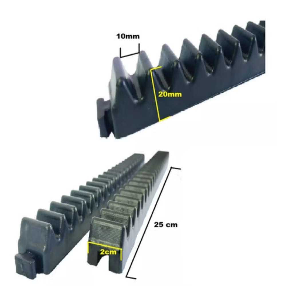 Cremalheira Gomo de Polipropileno (PP) para Motor de Portão Deslizante 25cm - Pacote com 20 Peças (Total 5 Metros) Descrição do Produto: Gomo de Cremalheira 25cm para Portão Automático – Alta Resistência e Fácil Instalação Deixe seu portão automático mais seguro e eficiente com o gomo de cremalheira 25cm. Ideal para sistemas deslizantes, esse modelo é compatível com motores automáticos e proporciona um deslizamento suave e silencioso. Fabricado em material resistente, ele suporta o peso do portão sem deformar, garantindo durabilidade e desempenho. ✅ Tamanho: 25 cm ✅ Instalação rápida com parafusos (não inclusos) ✅ Alta durabilidade – suporta uso contínuo ✅ Compatível com motores de diversas marcas ✅ Ideal para residências, comércios e indústrias 🔩 Aplicação: Utilizado em portões automáticos deslizantes, o gomo é encaixado na cremalheira para formar a base do trilho por onde o motor traciona o portão. Compatível com Motores: PPA, SEG, GAREN, UNISYSTEM e MC GARCIA, ROSSI Garanta agora o seu e evite transtornos com peças de baixa qualidade! Características: - Material: Polipropileno (PP) de alta resistência - Comprimento: 25cm por peça - Espessura: 2,5cm - Altura: 2cm - Distância entre os furos para parafuso: 10cm - Passo dos dentes: 1cm Recomendamos a instalação por um profissional qualificado para garantir segurança e evitar danos ao produto.