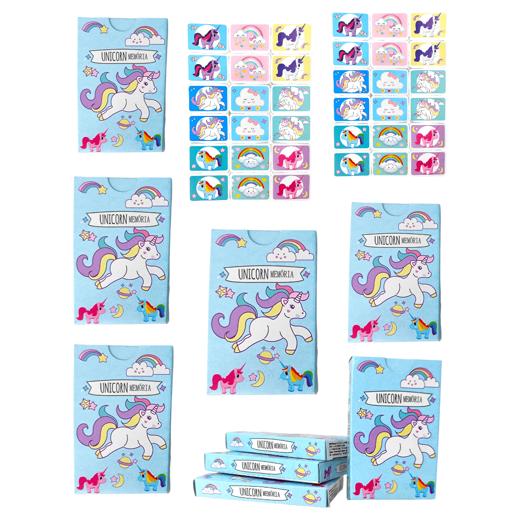 Kit 20 Jogo De Memoria Unicornio Cartas Kit Festa Infantil Lembrancinha Aniversario Prenda Criança