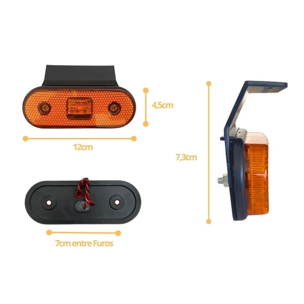 Kit 20 Lanterna Lateral LED Para Carreta Facchini Caminhão Trailer Reboque Com Suporte Amarela