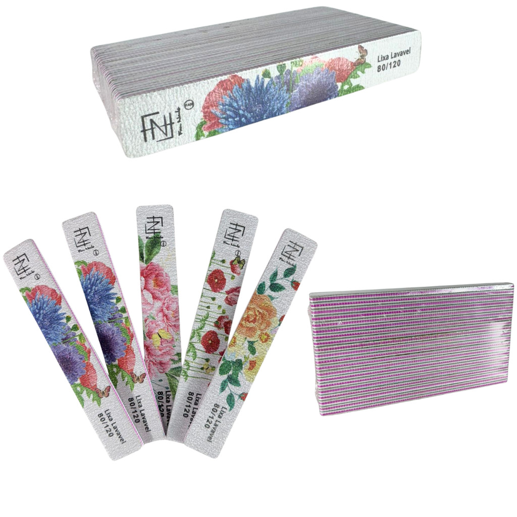 Kit 20 Lixa De Unhas Lavável 80/120 Com Régua Fan Nails