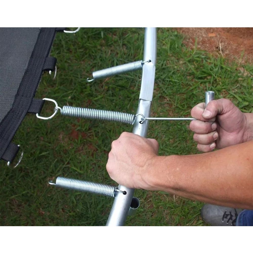 Mola para Cama Elástica de 13 cm com preço de fábrica - Kit Atacado com 20 unidades Quem tem e trabalha com camas elásticas sabe da importância de proteger e aumentar a durabilidade de seu equipamento. Para renovar a sustentação da lona da sua cama elástica, é preciso trocar as molas antigas por novas. A mola de 13 cm para cama elástica serve para encaixar a lona na estrutura do pula-pula, fazendo com que a lona fique firme para suportar os impactos gerados pelo salto. Este tamanho de mola é produzido por padrão para lonas de cama elástica de 1,83, 2 m e 2,44 m, porém pode ser que existam camas elasticas de outros padrões, neste caso meça sua mola em repouso(retirada da cama) e compre a medida mais aproximada da sua. Se você trabalha com locação de equipamentos para festas e eventos, o kit reposição de molas de cama elástica no atacado é ideal para investir, você terá uma quantidade suficiente para estoque e reposição de acessórios para sua cama elástica. Comprar acessórios de cama elástica no atacado facilita a troca dos equipamentos e economiza tempo na hora da compra. A mola de pula-pula é um acessório resistente feito em aço galvanizado, com fio de 3,2 mm e é totalmente adequado para sua utilização de absorver os impactos na lona causados pelo salto na cama elástica. Este kit de molas para reposição com 20 unidades pode ser revendido ou usado em seu próprio negócio de locação de brinquedos. Comprando o kit molas de reposição para cama elástica no atacado com 20 unidades, você adquire um produto de alta qualidade e durabilidade para usar em seu próprio negócio!