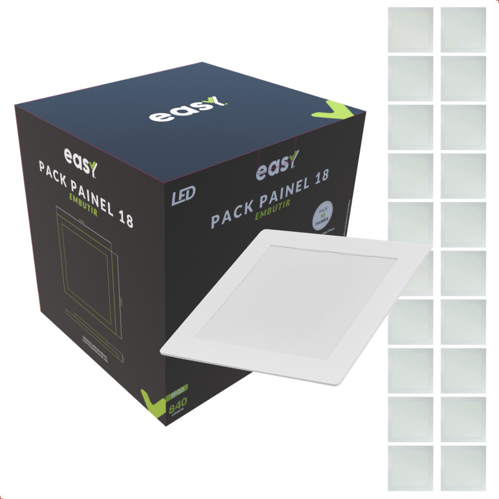 Kit 20 Painel Led Embutir 18w 6500K Quadrado Bivolt - Easy